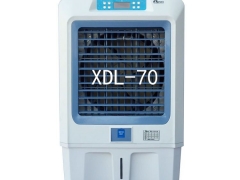 蒸发式移动冷风机是晋江迅达利通风设备有限公司研制的高科技产品。充分利用“蒸发降温”的原理,采用高效湿帘作为蒸发器,不仅降温效果好,而且能过滤空气中的灰尘,改善空气质量。其降温原理是:通过风机抽风,机内产生负压,同时水泵有水输送到布水器上,水均匀地湿润整个湿帘的表面,而且湿帘的特殊角度使水流直接流向空气进风的一侧,热空气经过被水淋湿的湿帘,吸收空气中大量的热量,使通过湿帘的空气温度降低,同时得到过滤,使送出的风变得凉爽、湿润而且清新。而未蒸发的水回落底盘,形成水路循环。
